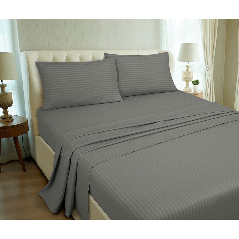 ROYALE LINENS 3 Piece Twin XL Sheets Set - Soft Brushed 1800 Microfiber - 1 Fitted, 1 Flat Sheet, 1 Pillow case - Wrinkle Free & Fade Resistant - Hotel Luxury Bed Sheets (Stripe Grey, Twin XL)