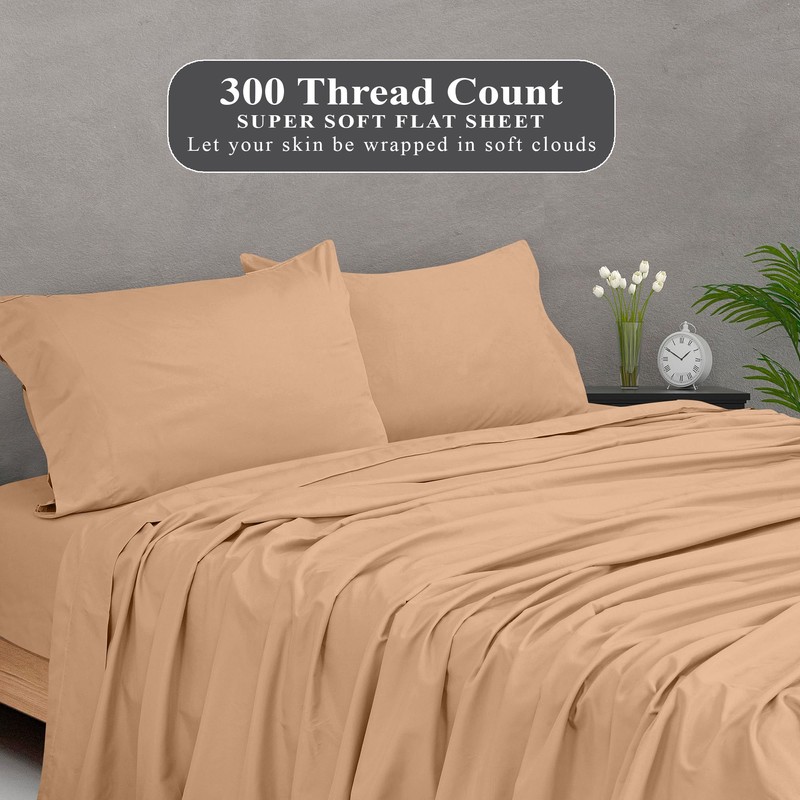 - PREMIUM FABRIC: Royale Linens 300 Thread Count Flat Bed Sheet Is Manufactured Using Finest Quality 100% Brushed Cotton. Making Them Breathable, Comfortable And Cozy. WASH BEFORE THE FIRST USE TO UNLOCK SOFTNESS