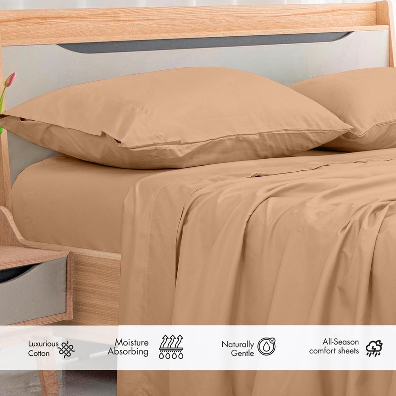 Royale Linens 300 Thread Count 100% Long Staple Combed Cotton Flat Sheet - Super Soft - Top Sheets - King Flat Sheet Sold Separately - Breathable, Cool & Crisp Percale Sheets Only (King, Sand)