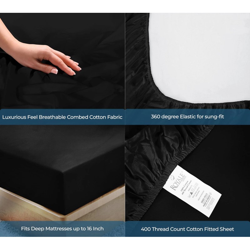Royale Linens 400 Thread Count 100% American Grown Cotton Fitted Sheet Queen Size - All Aro