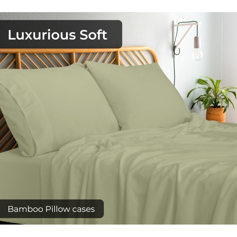 Royale Linens Cooling Pillow Cases King Size Set of 2-100% Rayon Derived from Bamboo Cooling Pillowcase for Hot Sleepers - Soft & Silky Pillow Covers with Envelope Closure (Sage Green 20x40 Inches)