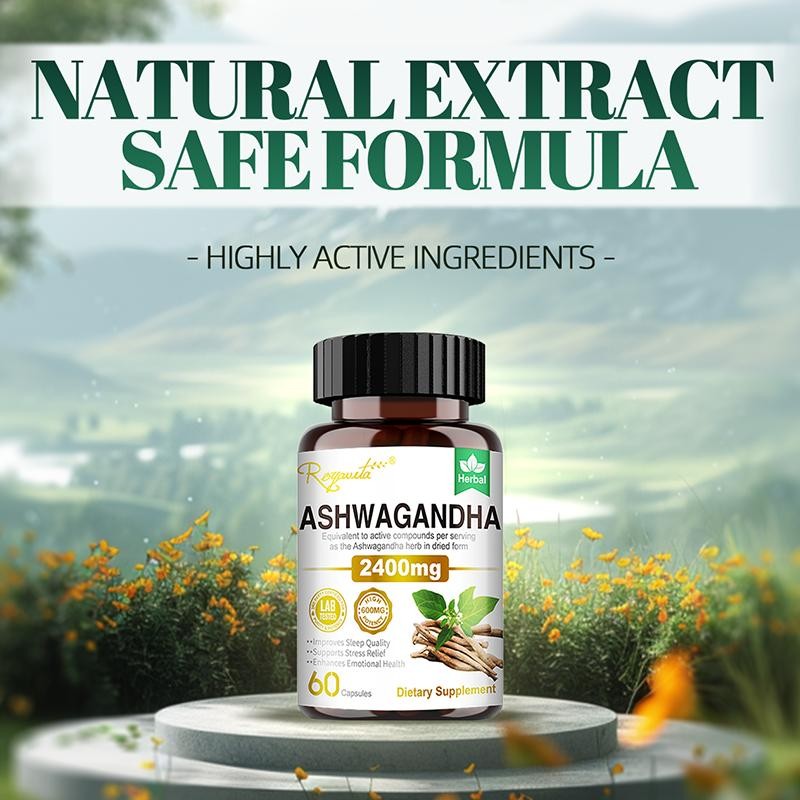Royavita Ashwagandha, 60 capsules, a combined supplement of Ashwagandha with Vitamin B6 and Vitamin B12 for Stress Relief, Mental Relaxation and Sleep Support.-5:_3 bottle of 180 Capsules