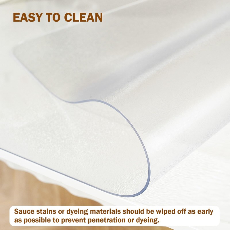 - Heavy Duty & Safe: 2mm thick transparent table cover is heavy enough to stay in place. Royhom's table pad is environmentally friendly, BPA-free, non-toxic and tasteless. It can be in direct contact with food. The maximum heat resistance is up to 176 ° F/80 ° C. In order to prolong the service life of the plastic table cover,It is recommended to place a pad on the hot plate.