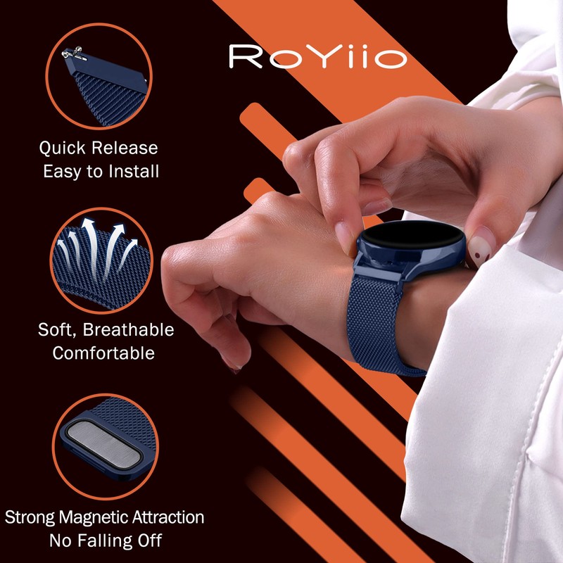 RoYiio Stainless Steel Replacement Bracelet for Lug Width 18 mm, 20 mm, 22 mm, Bracelet with Quick Release, Super Magnetic, Mesh Braided Stainless Steel Metal Strap for Men and Women - Blue