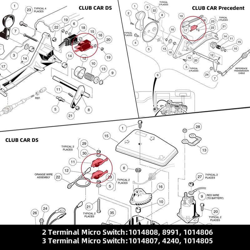 - Suitable 36V/48V Models: Roykaw micro switch is compatible with Club Car DS and Precedent 1980-up models; it also fits for 2018-up Tempo models. (Works on gas or electric model.)
