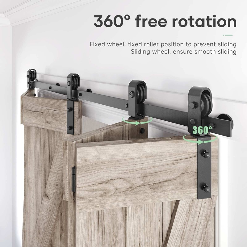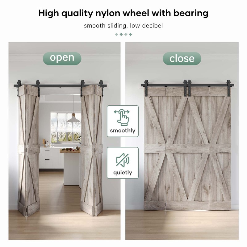 - 【Easy to Install】The total width of the door panel plus 4" is the length of the track. We provide detailed Bi-Fold sliding barn door kit instructions with pictures and text, which can be intuitively installed by yourselves, saving the time and cost of finding an installation team for you.