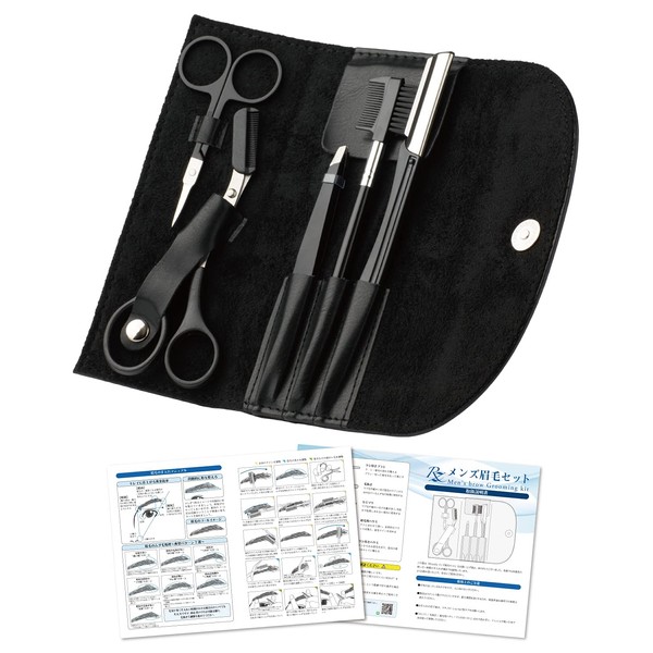 - (Set Contents) A total of 7 pieces set includes Eyebrow Scissors, Scissors with Comb, Hair Remover, Eyebrow Brush with Comb, Razor, Black Leather Storage Case, Full Color Instruction Manual. The instructions are detailed on how to use each and every piece of equipment is used in the instruction manual, and the 25 illustrations are thoroughly described