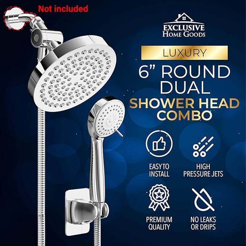 Rozin Chrome 6'' Rain Shower and 5 Settings Handheld Shower Head Combo Stainless Steel