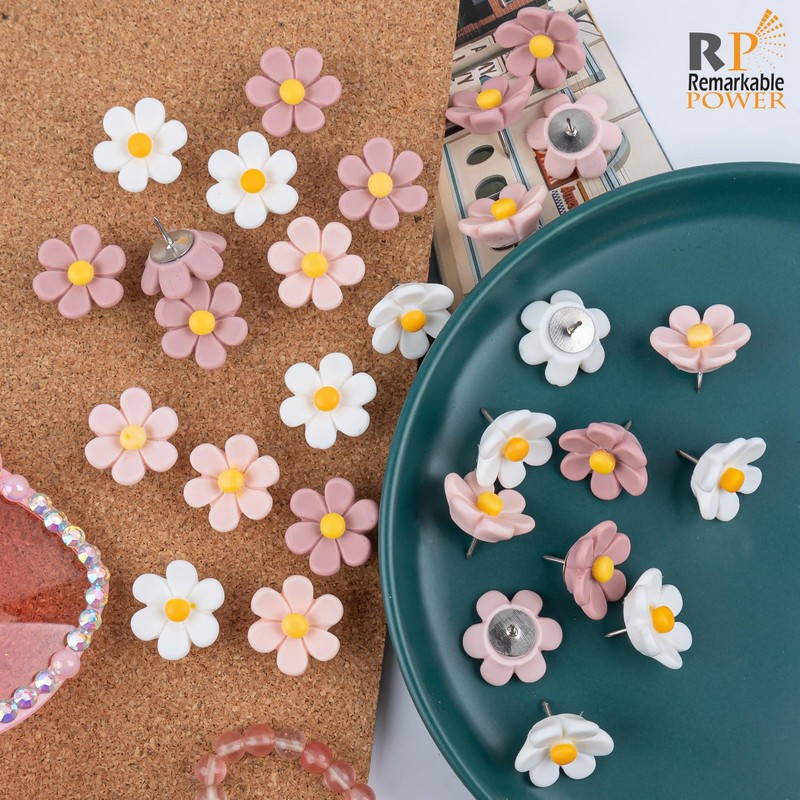 RP Remarkable Power, 30 Pack Flower Push Pins Thumb Tacks Cute Pushpin Decorative Thumbtacks for Cork Board Photo Wall Bulletin Board