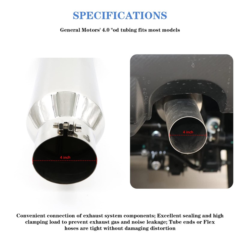 Notice: Our Exhasut Tips Only Fit For The Car with 4.0" Outlet Diameter Exhaust Tailpipe No Matter What Its Model is (Please Make Sure The Outside Diameter of Your Car Tailpipe is 4.0 Inch Before Purchasing )