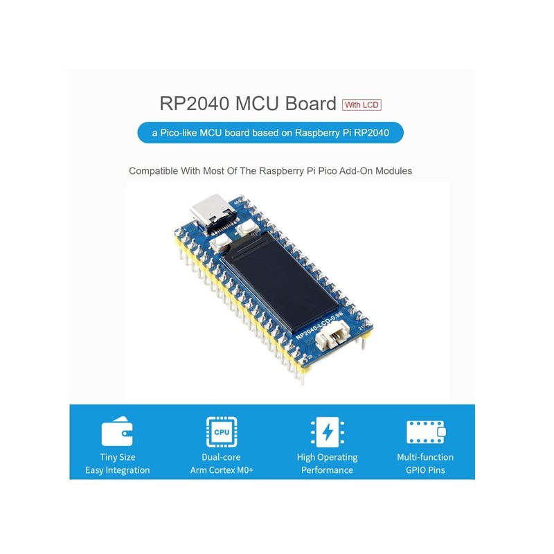 RP2040-LCD-0.96-M is a low-cost, high-performance Pico-like MCU board with flexible digital interfaces. It incorporates Raspberry Pi's RP2040
