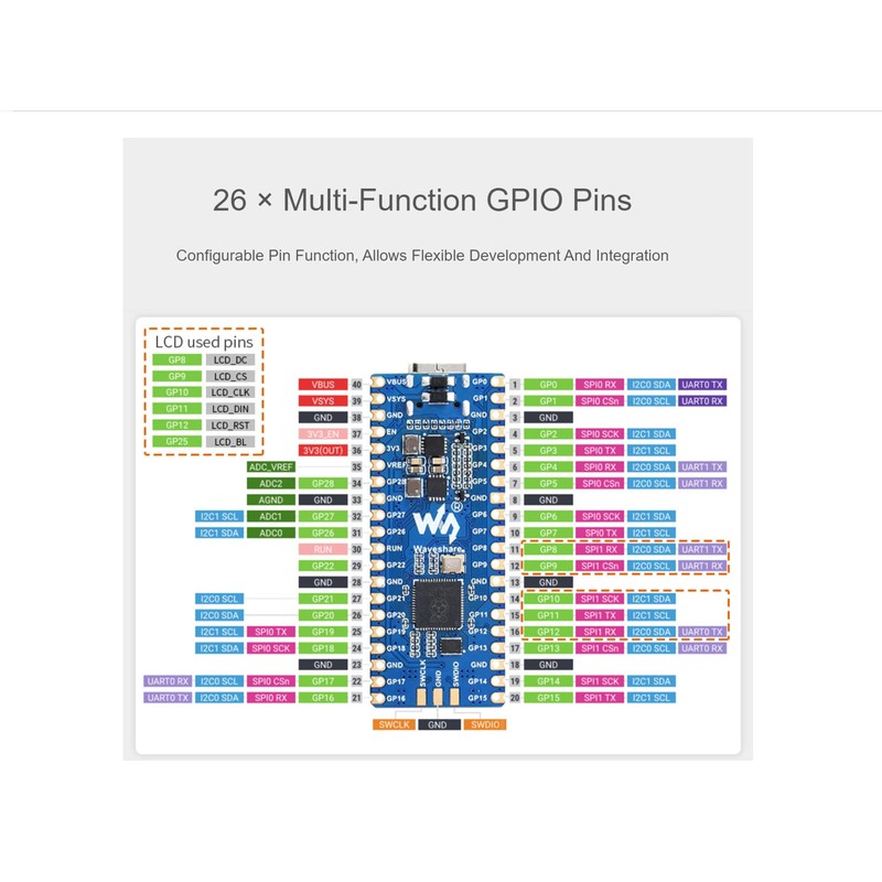 RP2040-LCD-0.96-M Mini Board High-Performance Pico-Like MCU Board with Pre-Soldered Header Based on Raspberry Pi Microcontroller RP2040,Onboard 0.96 inch LCD,USB-C Connector,Low-Cost