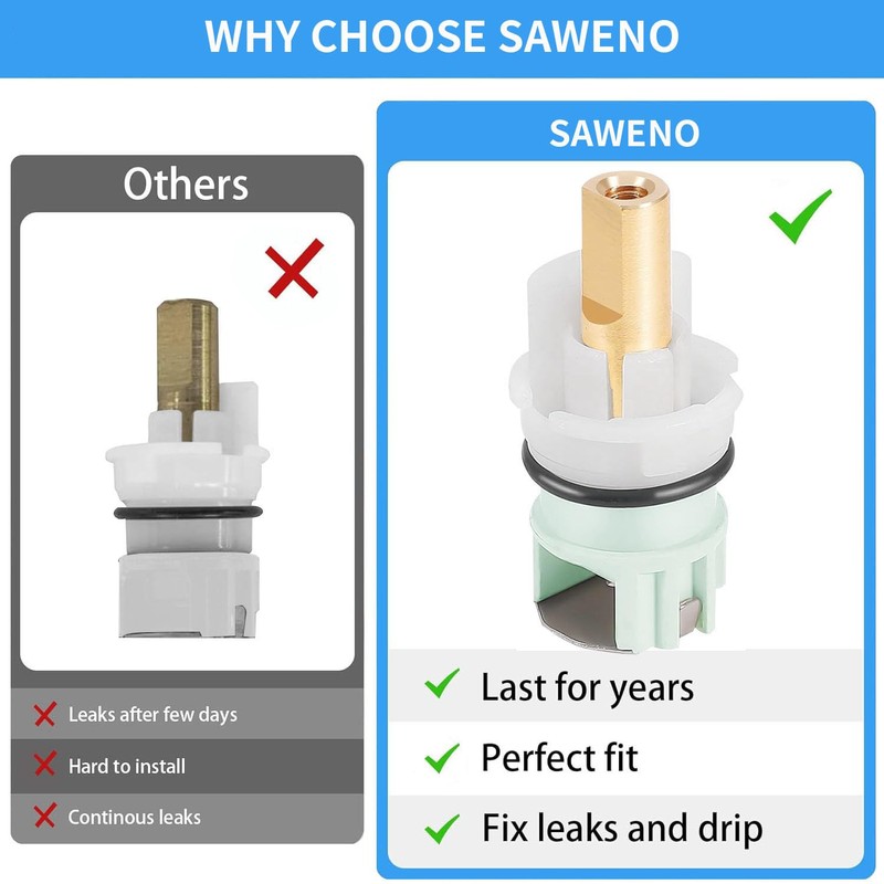 - 【Longer Lifespan vs Generic】High-grade brass stems + FDA rubber seats withstand 500,000 cycles. Outlasts OEM Delta cartridges under hard water conditions.