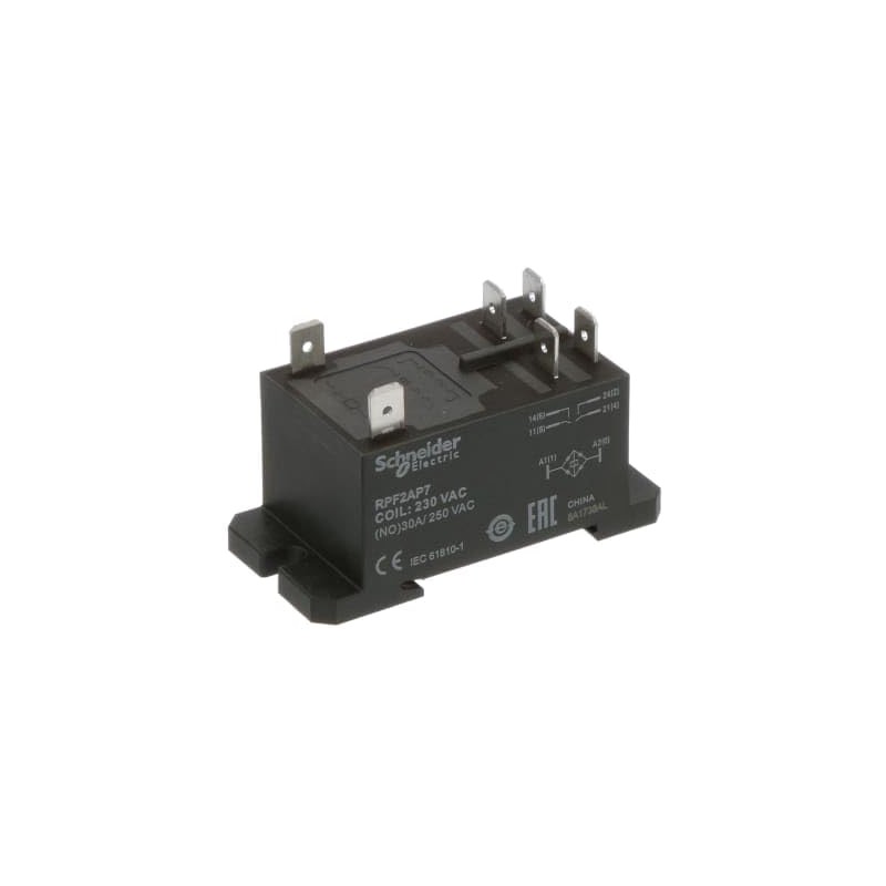 RPF2AP7 Power Relay, Panel Mount, Non-Latching: DPST-NO, Plug in, 30 A, 230VAC Coil
