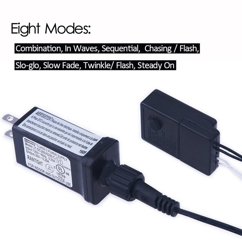 - ''' Dark green cable- Perfectly hiding at nights or plants; 1000pcs Pink LEDs up to 336 feet length(102.5m).#||# Memory Function: The light will remain the last mode setting while you turn on the power next time.#||# Low voltage 30V even after long lasting continuous flashing is safe to touch without risk of burns#||# IP44 waterproof class, can stay outdoors on a rainy day but the plug-in transformer must be kept indoor used.#||# Eight Modes: Combination, In Waves, Sequential, Slo-glo, Chasing / Flash, Slow Fade, Twinkle/ Flash, Steady On.'''