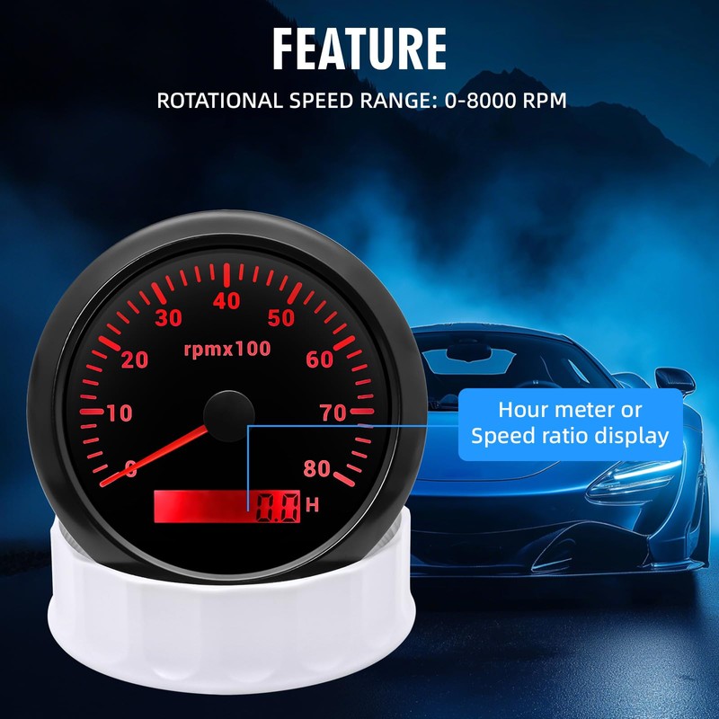 - 【Compatibility】 This rpm tachometer works flawlessly with 1 to 10-cylinder gasoline, diesel, or outboard engines. It serves as the ideal tachometer for 12V/24V car, truck, boat, and other marine/road vehicles. The robust tachometer gauge withstands harsh environments (IP67 waterproof rated), ensuring reliable operation whether on highways or open waters.