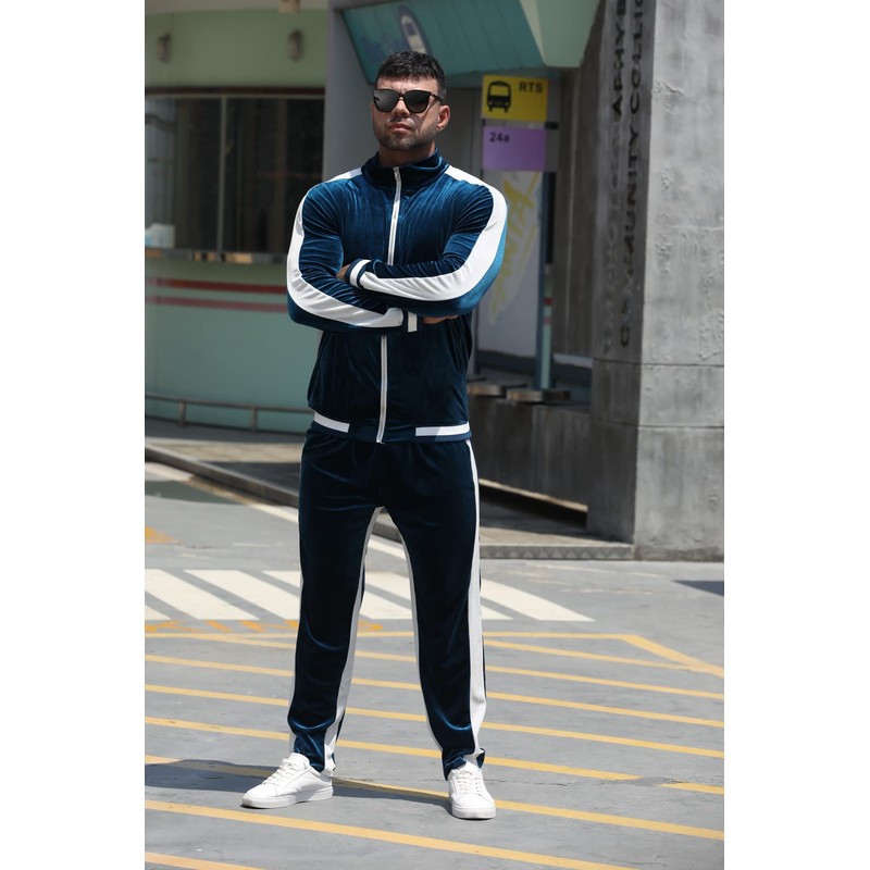 - 【Fabric】100.00% Polyester; The material of track suits for men set is soft to the touch,it's got this nice sheen,comfy and warm but still not to casual to wear.The lounge wear is Easy to wash.