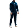 - 【Design】This is a style track suit. Standing collar design for neck protection; full-zip closure jackets for men with pockets on both sides to keep hands warm; The pants are styled in a straight boot cut leg and elastic for a better fit around the legs and waist. There are also pockets on both sides of the pants for keys, walletsand other belongings.