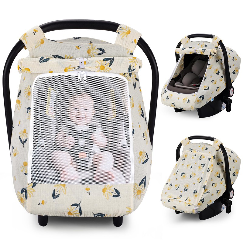 - 2 LAYERS WINDOWS & 3 MODES: Our carseat cover has 2-layer window, zippered breathable mesh and muslin sun shade, with 3 flexible modes. When fully covered, it protects from wind and sun while protecting privacy; the interactive mesh window is both breathable and stay connected; when fully open, it's easy for baby to get in and out