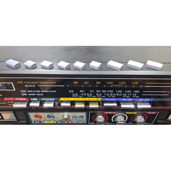 RRC 3D Printed - 9 Silver Push Buttons for Lasonic 975 Jumbo Boombox Radio