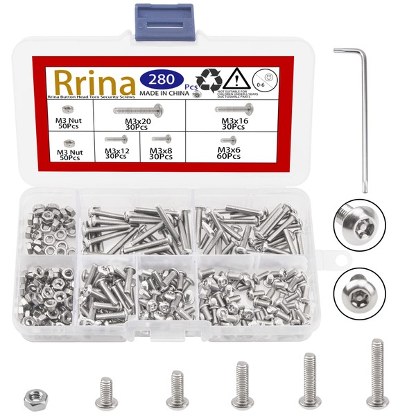 - PACKING QUANTITY: 280Pcs M3 torx security screws and nuts: M3x6--60Pcs, M3x8--30Pcs, M3x12--30Pcs, M3x16--30Pcs, M3x20--30Pcs, M3nuts--100Pcs, 1Pcs Wrenches.