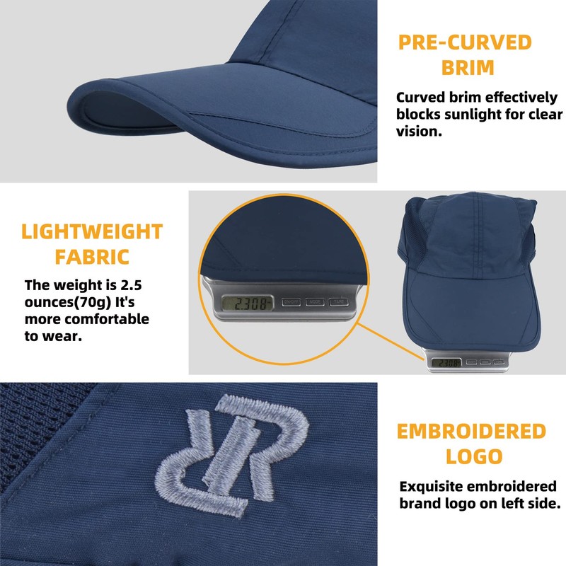 RRvane Quick Dry Running Cap Polyester Outdoor Sports Hat Lightweight Unstructured Baseball Cap for Men, Women (Navy)
