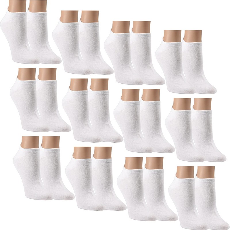 RS. Harmony Cotton Trainer Socks with Comfort Edge and Very Flat Toe Seam, Many Colours and Sizes, Also in XL-XXXL Plus Size, B: white-12 pairs