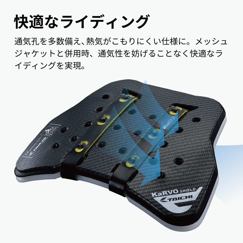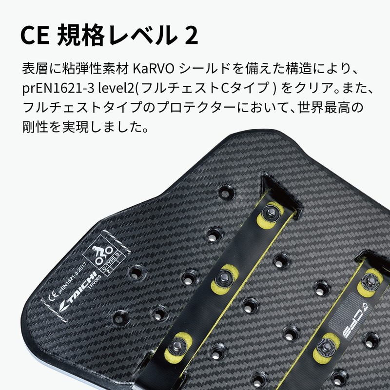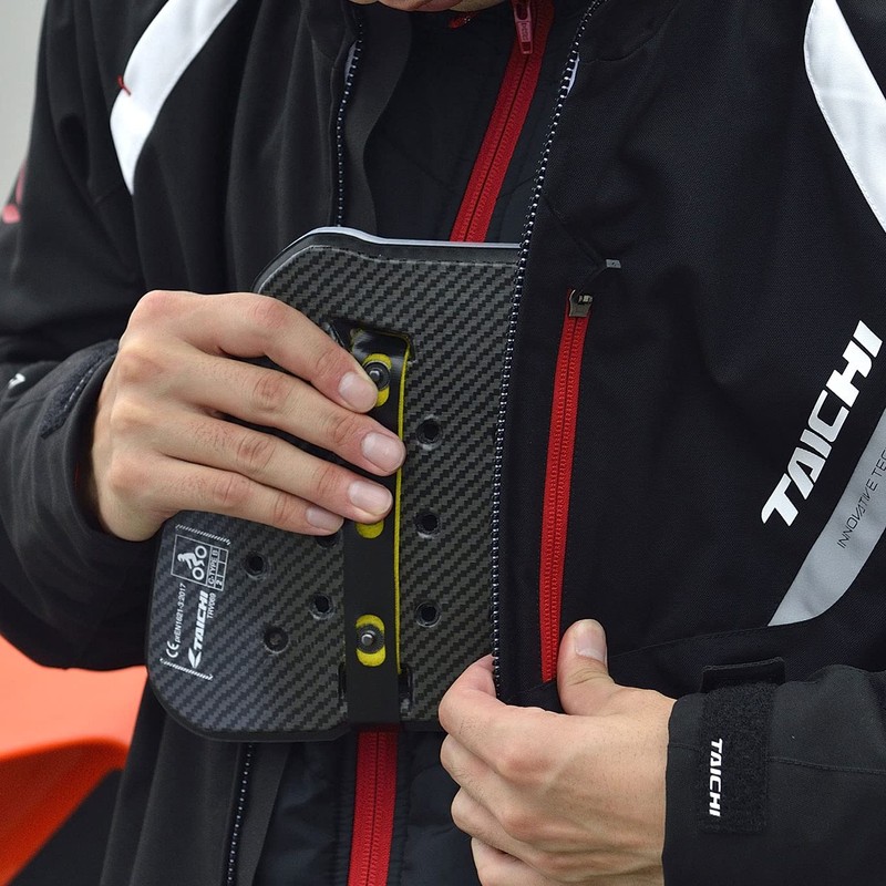 - Uses TECCELL honeycomb core material that is lightweight than water and is molded using special molding technology. With a thickness of 0.7 inch (17 mm) and a weight of approx. 8.8 oz (250 g), the prEN1621-3 level2 (separate chest DC type) is the first Asian manufacturer. In addition, it achieves the world's best rigidity in separate protectors. The 2-part construction allows you to put the jacket on and off without having to remove the button every time you want to put it on and take it off, and the main benefit is that the protector is difficult to notice when you zip it down during breaks. There are few cases of crash on the chest caused by traffic accidents sometimes can be big enough to take a life (about 30% of death accidents caused by chest damage). The Texell Separate Chest Protector is the only chest protector in the world that combines the shock absorption and high rigidity required for chest protectors, while increasing the convenience of putting on and taking off. When wearing jackets that are not compatible with CPS (chest protector system), you can install this product by combining it with the TRV065 CPS fitting belt sold separately