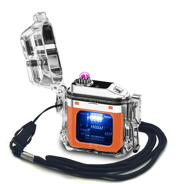 RSBYE Electric Lighter Transparent Cool Lighter Windproof Lighter Flameless Plasma Lighter Rechargeable USB Lighter with LED Battery Indicator (Orange)
