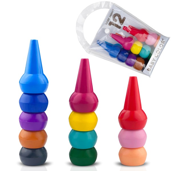 Rseuphiee 12 Colours Toddler Wax Crayons, Finger Colouring Pencils, Safe and Non-Toxic, Montessori Toy, Colourful Painting Time, Perfect for Graffiti, DIY Projects and Creative Hours