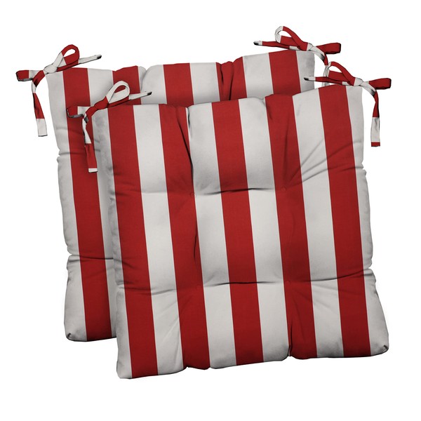 RSH DECOR Indoor/Outdoor Tufted Dining Chair Seat Cushions, 20" x 20" x 3" (Red & White Stripe) (Set of 2)