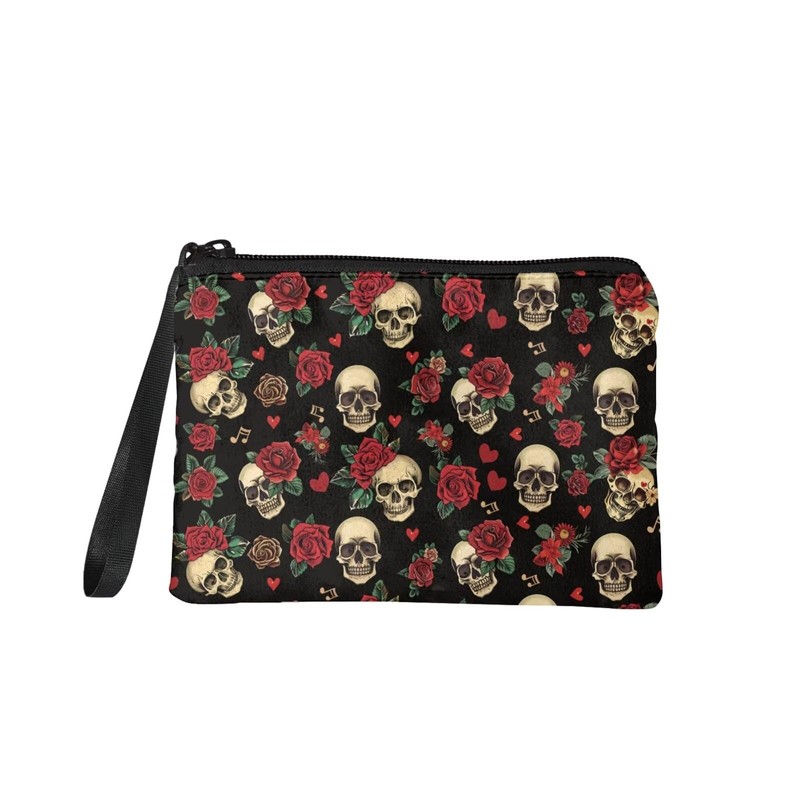 Rshubino Rose Skull Coins Purse Mini Wallet Coins Bag for Women Portable Strap Wallet Bag Lightweight Change Purse with Zipper for Travel Outdoor Shopping