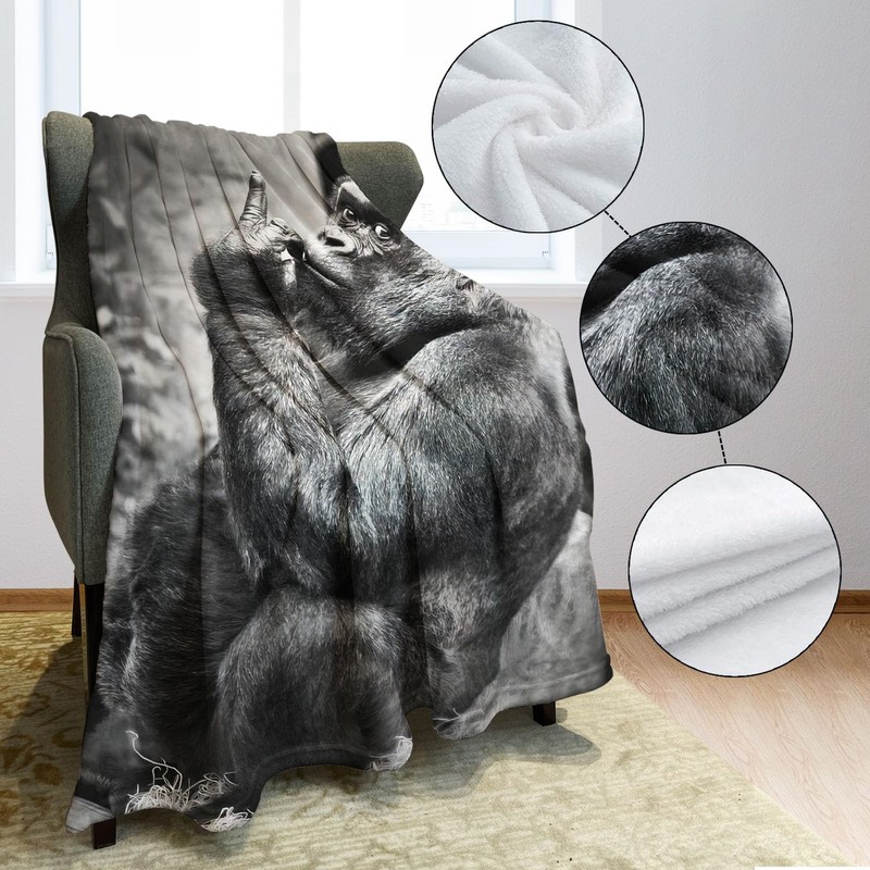 Rstick Rstick Gorilla Blanket Funny Animal Orangutan Fleece Blanket Soft Fuzzy Plush Throw Blankets for Couch Bed 60"x80"