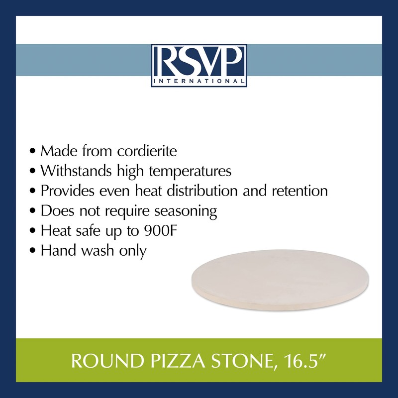 • SIZE: Pizza stone measures 16.5 in diameter and is approximately half an inch thick
