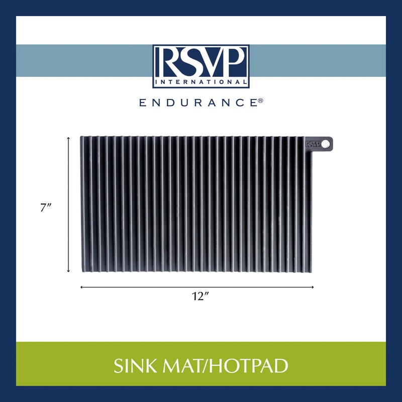 RSVP International Silicone Dual Use Sink Mat/Hot Pad, 12x7", Black