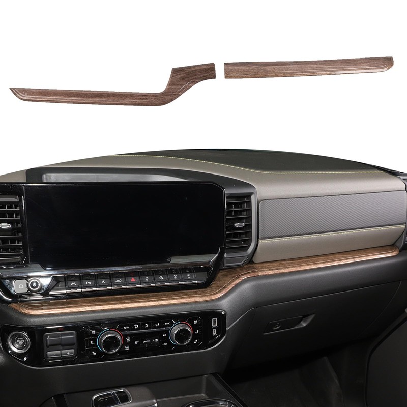 RT-TCZ for Silverado Dashboard Panel Trim Compatible with Chevy Silverado 2022 2023 Wood Grain Interior Accessories 2pcs