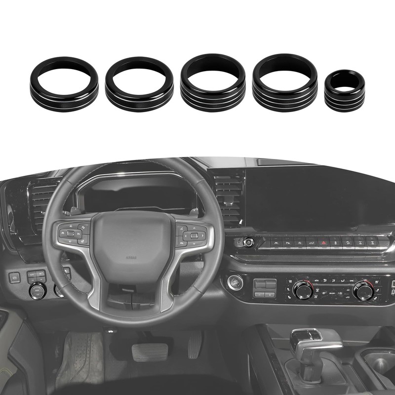 RT-TCZ for Silverado Headlight AC Knob Trim Rings for Chevy Silverado 2022 Up Black Interior Accessories 5pcs