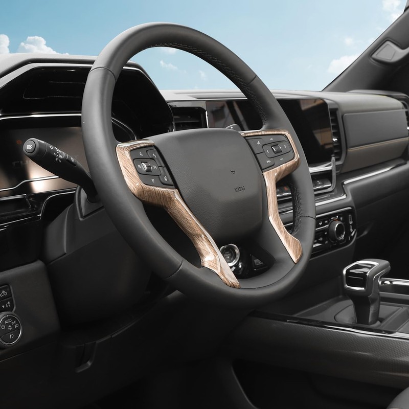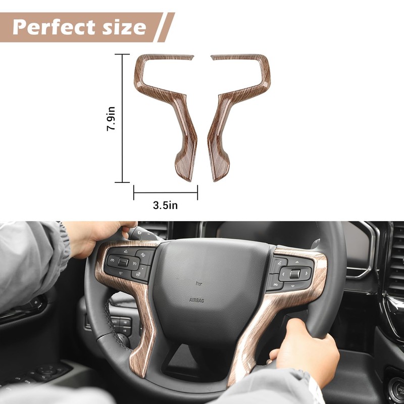 RT-TCZ for Silverado Steering Wheel Panel Trim for Chevy Suburban 2020 Up Tahoe 2021 Up Silverado 2019 Up Wood Grain Interior Accessories 2pcs