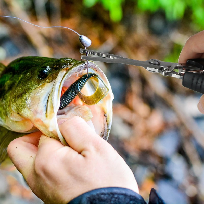 - Ergonomic One-Handed Operation: Features a clever spring-loaded mechanism and compact, folding design that keeps the jaws freely open, allowing for smooth, single-handed use that minimises hand fatigue. The black ergonomic handles incorporate non-slip cushioning for a secure, comfortable grip even with wet hands, ensuring precise control during hook extraction or line trimming tasks on the bank or boat