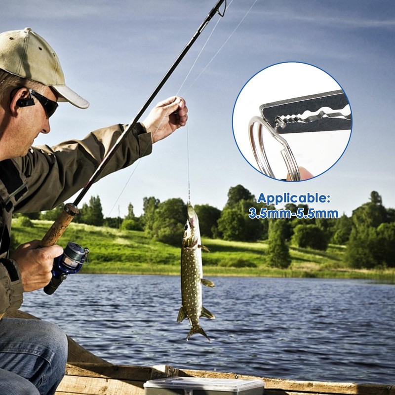 - Multi-Purpose Angling Tool: These corrosion-resistant fishing pliers combine five essential functions in one handy instrument, efficiently remove hooks from catches like carp and pike, neatly slice through braided or fluorocarbon lines, effortlessly open split rings from size 1 to 5 (ID 3.5mm-5.5mm), grip hooks securely, and act as a reliable disgorger. Simplify your tackle kit without sacrificing capability for freshwater or coastal fishing scenarios