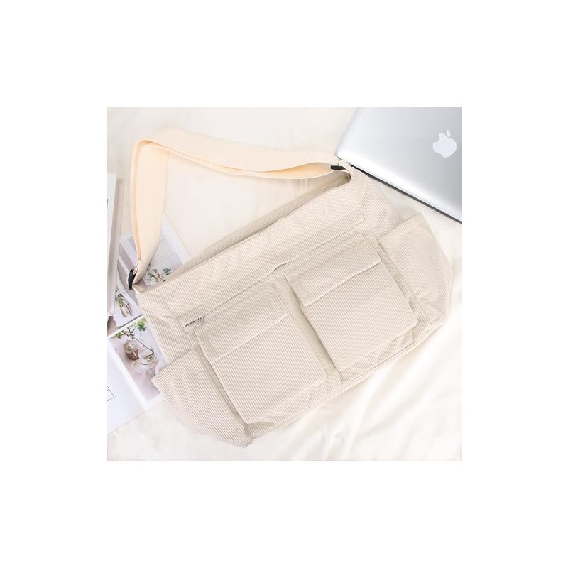 RTGNEI Large Corduroy Messenger Bag for Women/Men School Satchel Hobo Tote Crossbody Bags