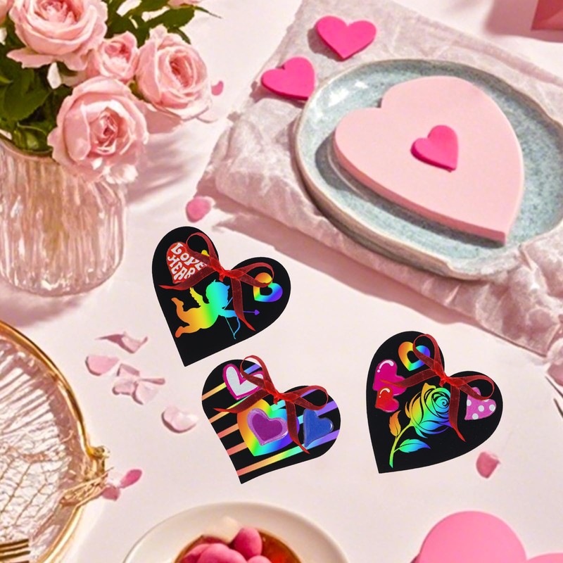 - Unique Heart-shaped Designs: Our rainbow scratch paper features 7 unique heart shapes, making it the perfect choice for creating adorable Valentine gift cards with your friends, allowing you to express your love in a sweet and personal way