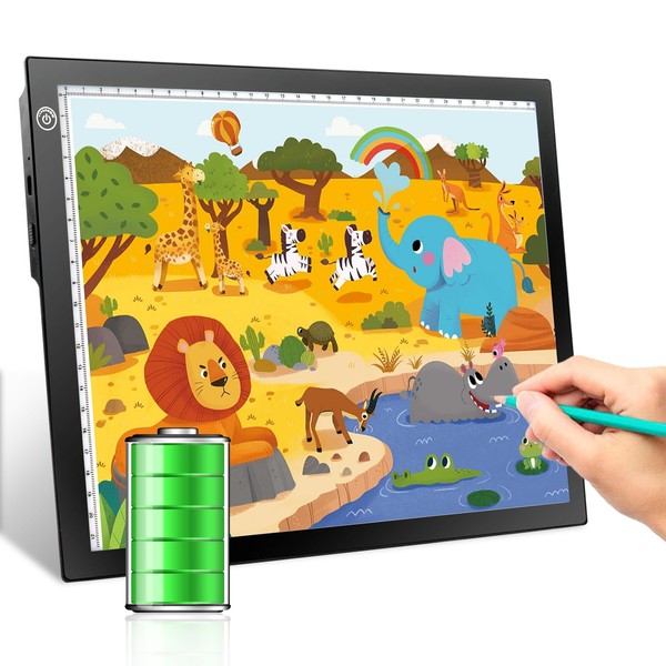 • Portable & Rechargeable: The A4 light pad is designed to be thin and light weight, thus it's portable so that you can take the board with you as you like. Built-in 2100mAh rechargeable battery, whether you want to be on the grass outdoors, or at home on your comfortable sofa, or in a leisurely coffee store, you can enjoy a wonderful drawing time at any time