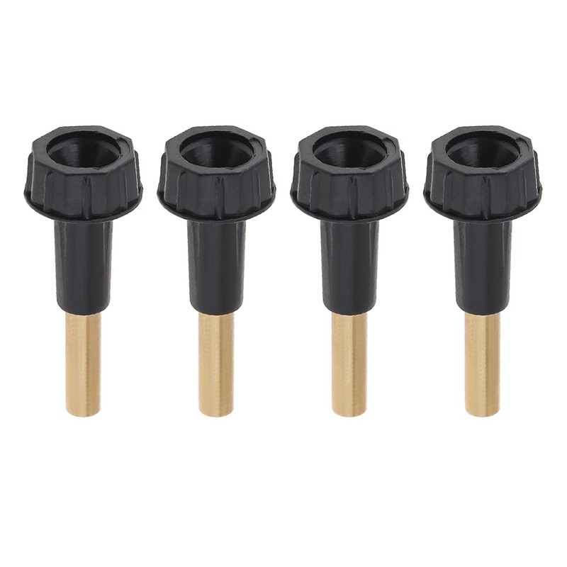 • Package includes: 4 replacement black knobs with brass extensions.