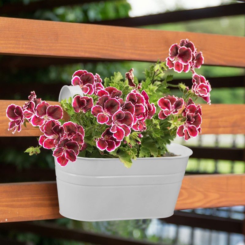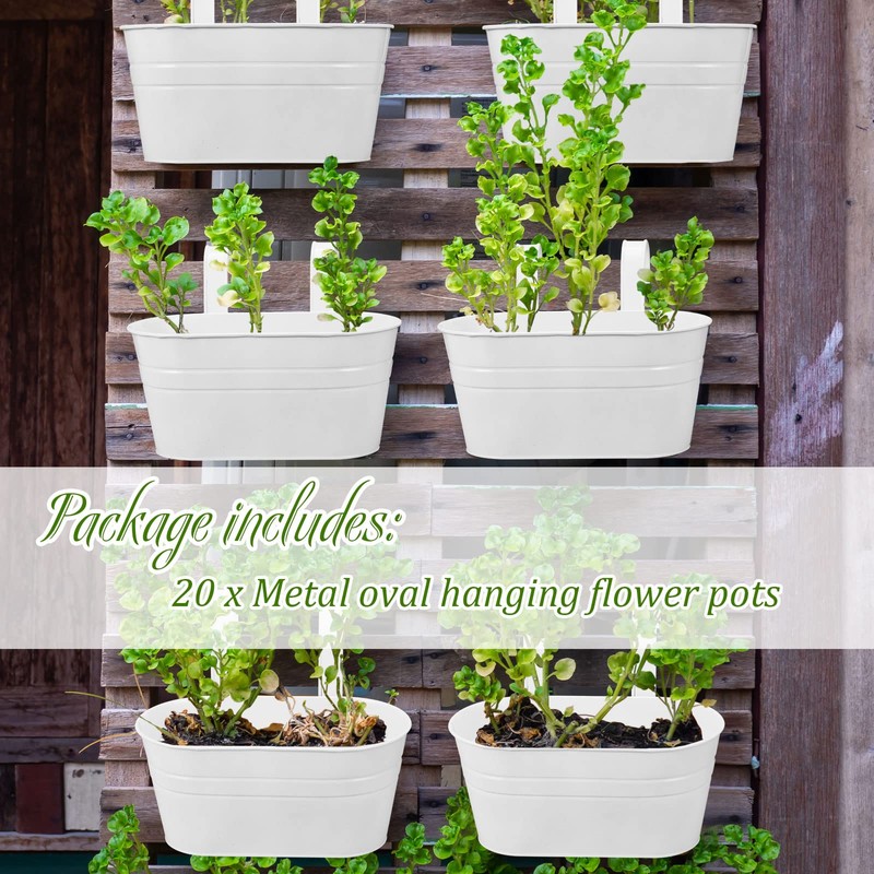 Rtteri 20 Pcs Metal Iron Hanging Flower Pots White Hanging Bucket Pots Deck Rail Planter Porch Railing Planters Hanging Planter Box Flower Plant Holder with Detachable Hook for Garden Home Wall Decor