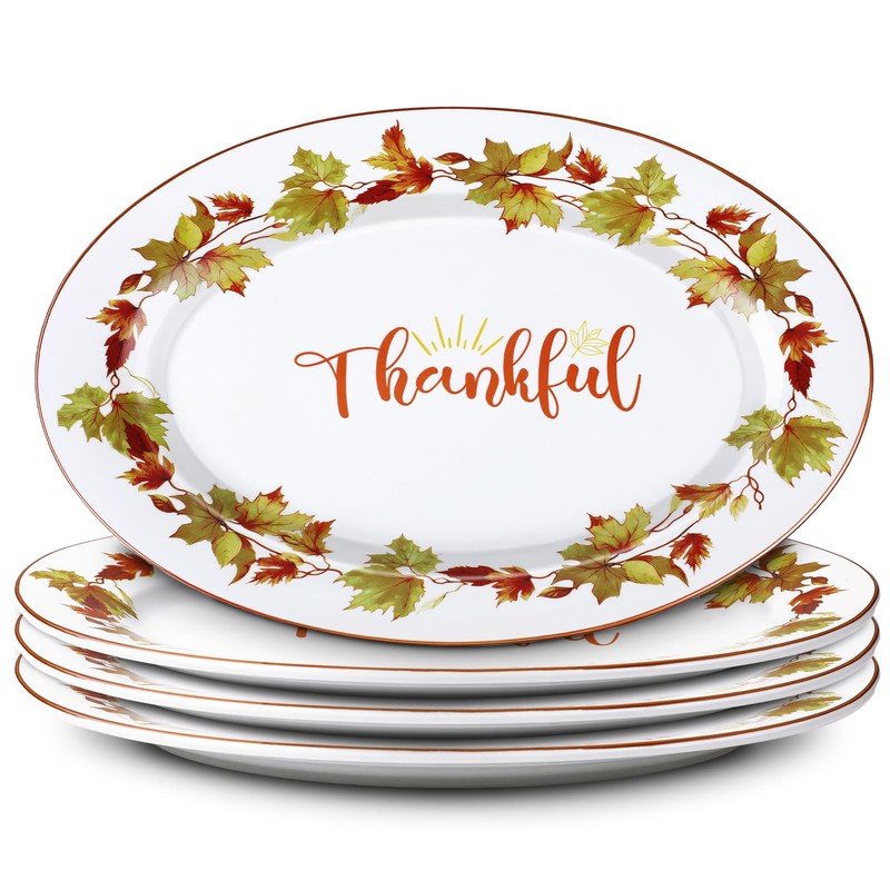 - Autumn Berry Design: these fall oval serving platter set with warm toned berry, autumn leaves and rustic vines with the sentiment "Thankful" in the center to celebrating the harvest season; The edge of the plate is outlined with a circle of golden lines, evokes the golden charm of fall and Thanksgiving, a must have for Thanksgiving celebrations, friends giving meals, and fall seasonal decoration, adding a little something more special to meal time