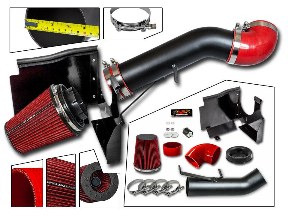 Rtunes Racing Cold Heat Shield Air Intake MATT BLACK+ RED for 99-06 Silverado 1500 4.8 /5.3 V8