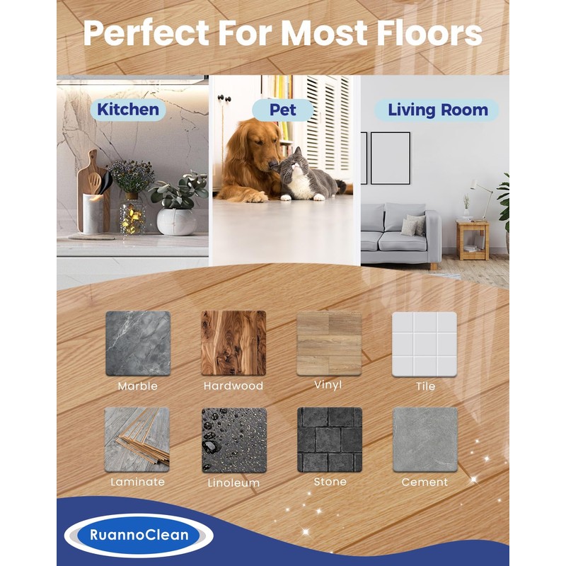 • Suitable for Various Floor: The floor cleaning pads are great for daily cleaning and deep cleaning of hardwood floors, gentle but powerful enough to ackle pet hair, debris, and grime on hardwood, tile, marble, laminate, vinyl, etc