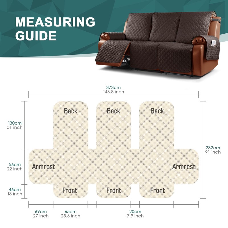 - PERFECT FIT: Great coverage for your recliner, protect your furniture from dirt, daily wear and tear. Recliner sofa covers 3 seater fits the couch with a seat width of 76.8 in. Please measure your couch according to the pictures on the product page