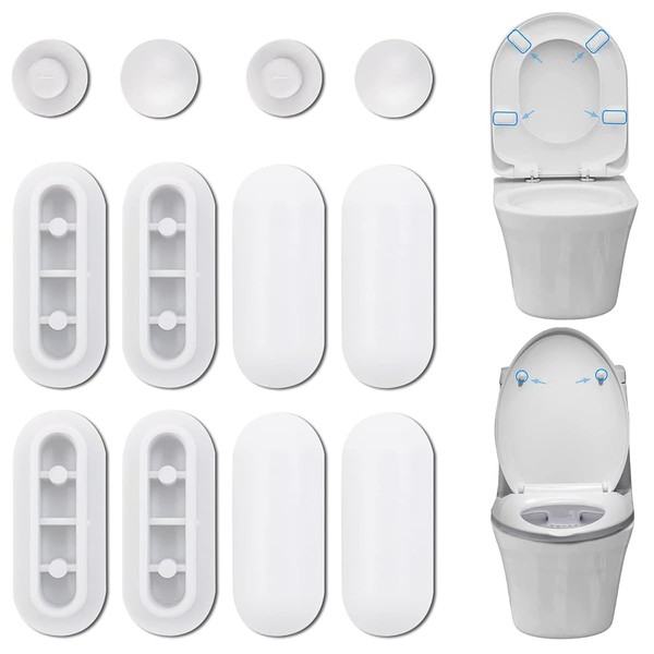 Ruayia Pack of 12 Toilet Seat Buffers, Toilet Seat Bumper with 4 Ring Buffer and 8 Lid Buffer for Toilet Lid, Toilet Seat Replacement Buffer for Home, Hotel